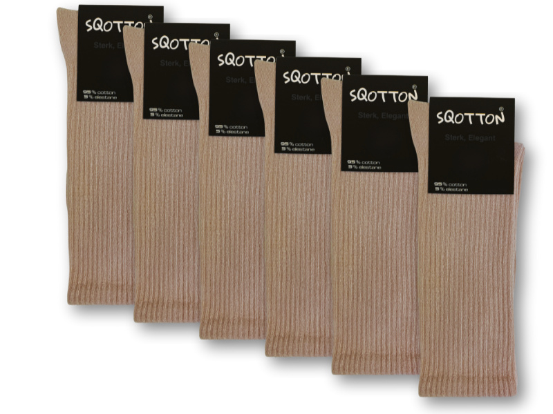 Set van 6 paar katoenen damessokken van het merk SQOTTON® in de kleur lichtbruin/cappuccino. Deze damessokken zijn vervaardigd uit een zachte katoenmix, wat zorgt voor een uitstekend draagcomfort. Dankzij het hoge percentage katoen zijn de sokken ademend, anti-transpirerend en zacht voor de huid, waardoor ze perfect zijn voor dagelijks gebruik in alle seizoenen.