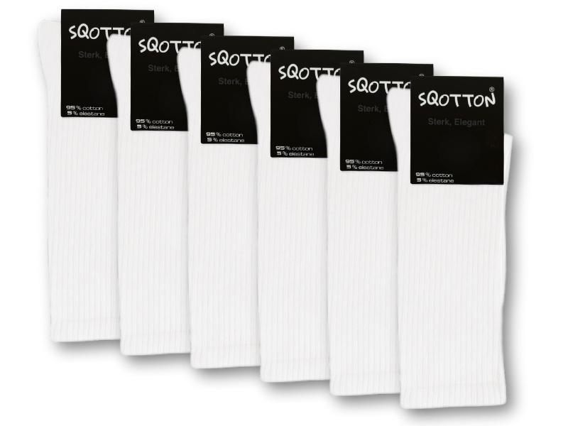 Set van 6 paar katoenen damessokken van het merk SQOTTON® in de kleur wit. Deze damessokken zijn vervaardigd uit een zachte katoenmix, wat zorgt voor een uitstekend draagcomfort. Dankzij het hoge percentage katoen zijn de sokken ademend, anti-transpirerend en zacht voor de huid, waardoor ze perfect zijn voor dagelijks gebruik in alle seizoenen.