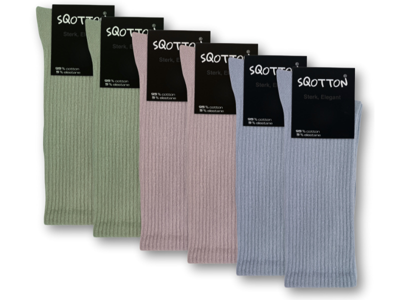 Set van 6 paar katoenen damessokken van het merk SQOTTON® in de kleur groen, lila en blauw. Deze damessokken zijn vervaardigd uit een zachte katoenmix, wat zorgt voor een uitstekend draagcomfort. Dankzij het hoge percentage katoen zijn de sokken ademend, anti-transpirerend en zacht voor de huid, waardoor ze perfect zijn voor dagelijks gebruik in alle seizoenen.