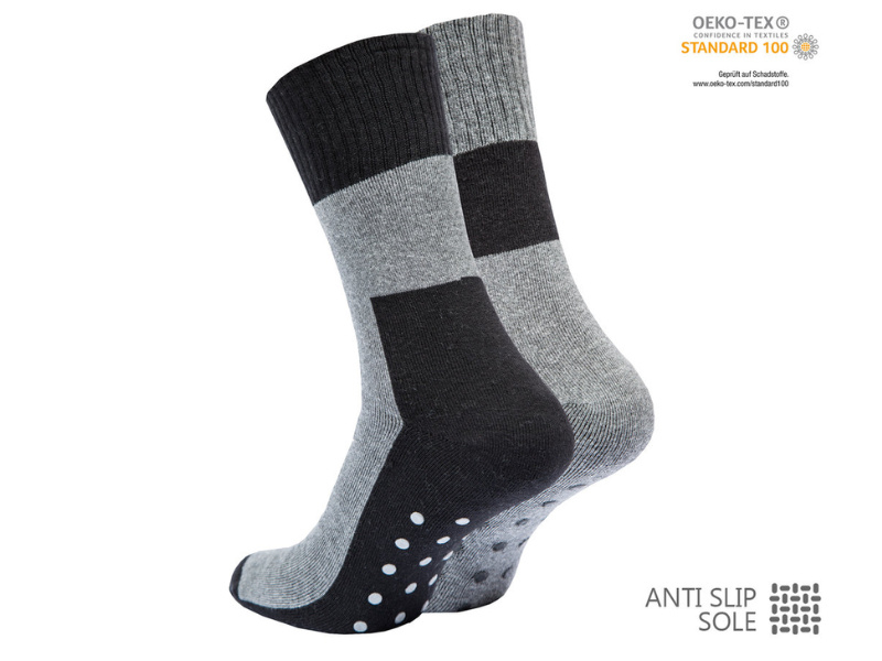 De antislip zool met kleine rubberen nopjes over de gehele zool geeft extra grip en stabiliteit op gladde oppervlakken zoals tegels, laminaat of parket. Ideaal voor thuis, zorginstellingen of hotels. De sokken zijn gemaakt van katoen, wat zorgt voor een ademende, zachte en duurzame kwaliteit.