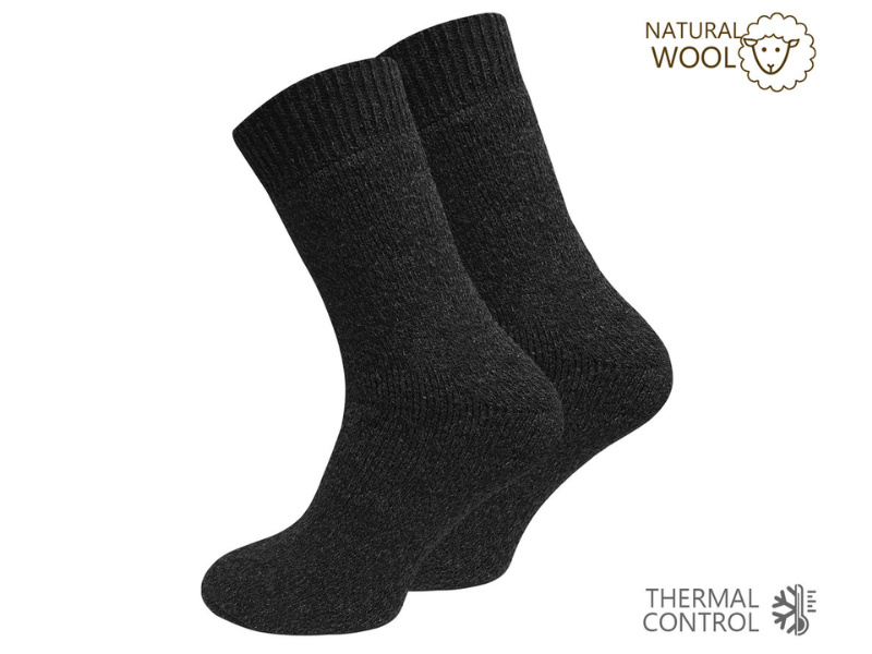 Set van vier paar dikke Noorse wollen sokken in de kleur antraciet. Deze dikke, gebreide Noorse wollen sokken omhullen je voeten met heerlijke warmte en comfort. Dankzij het hoge wolgehalte reguleren ze op natuurlijke wijze de temperatuur en voeren ze vocht effectief af, zodat je voeten behaaglijk blijven zonder te zweten. De stevige, isolerende structuur zorgt ervoor dat je zelfs op de koudste dagen warme voeten hebt. Perfect als huissokken, in je winterlaarzen of tijdens buitenactiviteiten zoals wandelen of kamperen. Deze wollen sokken worden geleverd per vier paar.