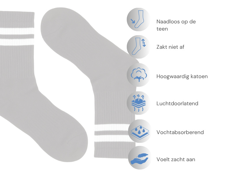 Elastische boord: Zorgt ervoor dat de sokken goed blijven zitten en niet afzakken.