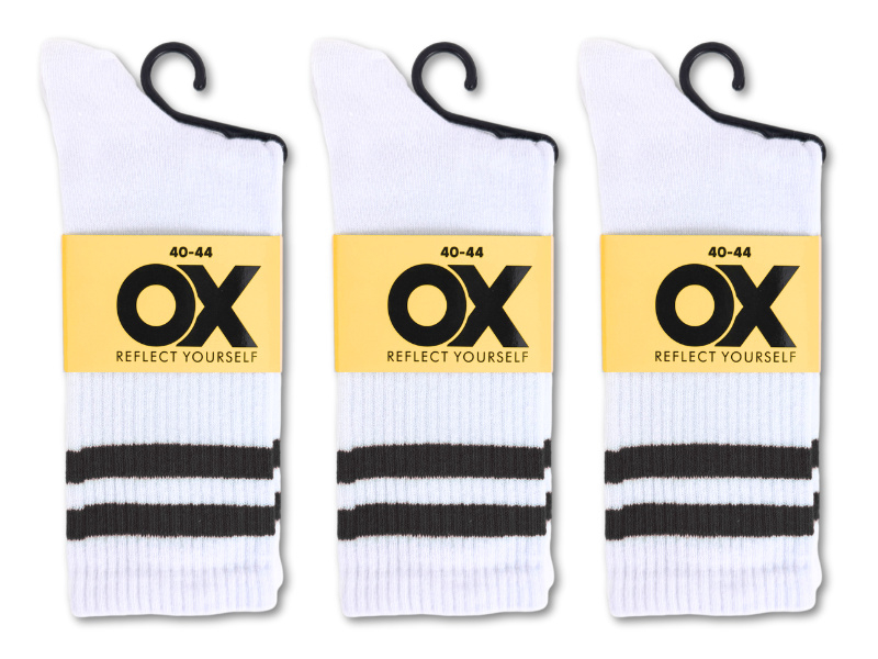 Set van 3 paar dunne herensokken met trendy strepen in de kleur wit/zwart. Deze herensokken zijn vervaardigd uit een zachte katoenmix, wat zorgt voor een uitstekend draagcomfort. Dankzij het hoge percentage katoen zijn de sokken ademend, anti-transpirerend en zacht voor de huid, waardoor ze perfect zijn voor dagelijks gebruik.