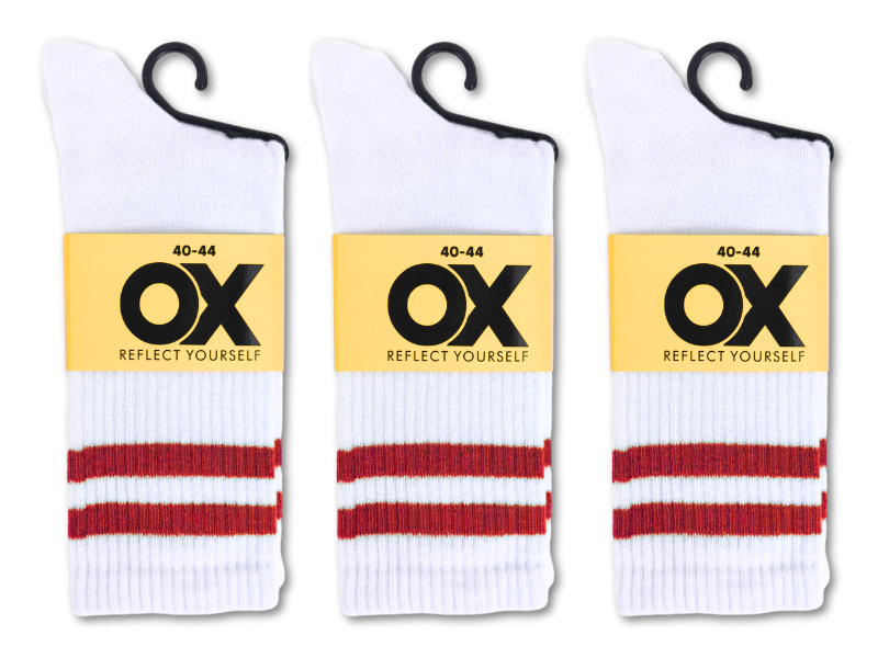 Set van 3 paar dunne herensokken met trendy strepen in de kleur wit/rood. Deze herensokken zijn vervaardigd uit een zachte katoenmix, wat zorgt voor een uitstekend draagcomfort. Dankzij het hoge percentage katoen zijn de sokken ademend, anti-transpirerend en zacht voor de huid, waardoor ze perfect zijn voor dagelijks gebruik.