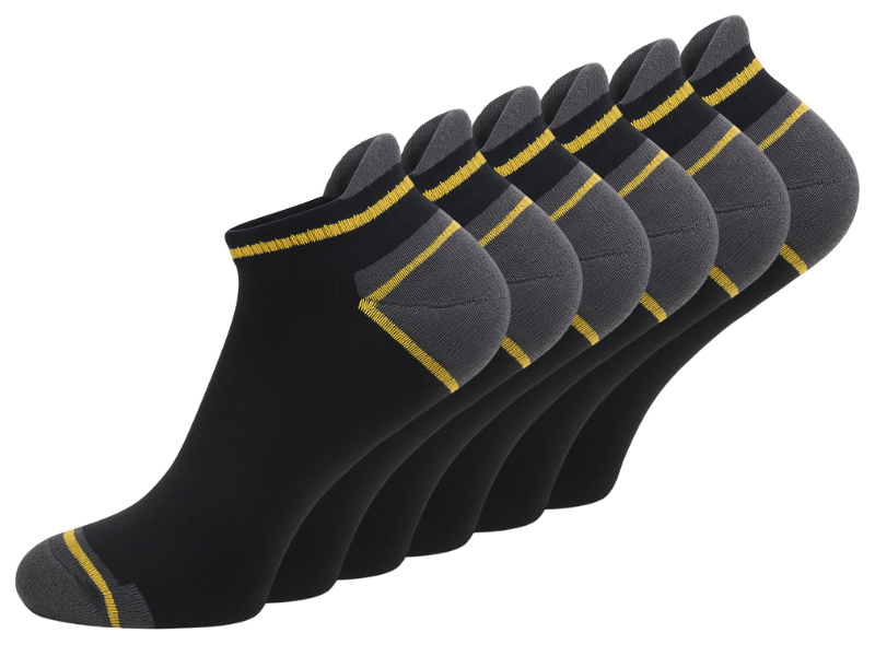 Set van 6 paar lage werksokken met badstofvoering in de kleur zwart. Deze korte werksokken zijn vervaardigd uit een zachte katoenmix, wat zorgt voor uitstekend draagcomfort. De onderkant van de sokken, van hiel t/m teen, is voorzien van badstofvoering. Dit maakt de sokken vochtabsorberend en licht schokdempend. Dankzij het percentage katoen zijn deze sneakersokken ademend, anti-transpirerend en zacht voor de huid, waardoor ze perfect zijn voor dagelijks gebruik en werkomgevingen.