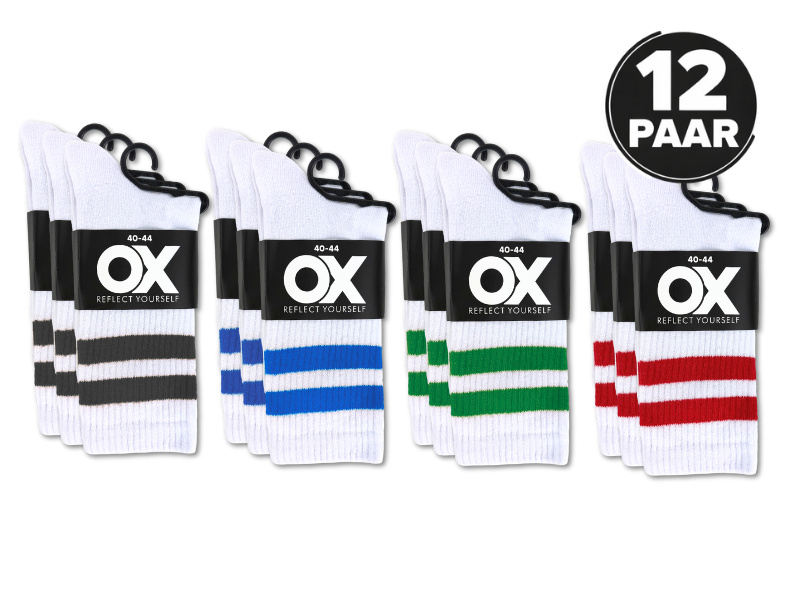Set van 12 paar sportsokken in de kleur wit met gekleurde strepen. Deze sportsokken zijn vervaardigd uit een zachte katoenmix en bieden een comfortabel draaggevoel gedurende de hele dag. Dankzij het hoge katoenpercentage zijn de sokken ademend, vochtabsorberend en zacht voor de huid, waardoor ze ideaal zijn voor dagelijks gebruik en sportieve activiteiten.
